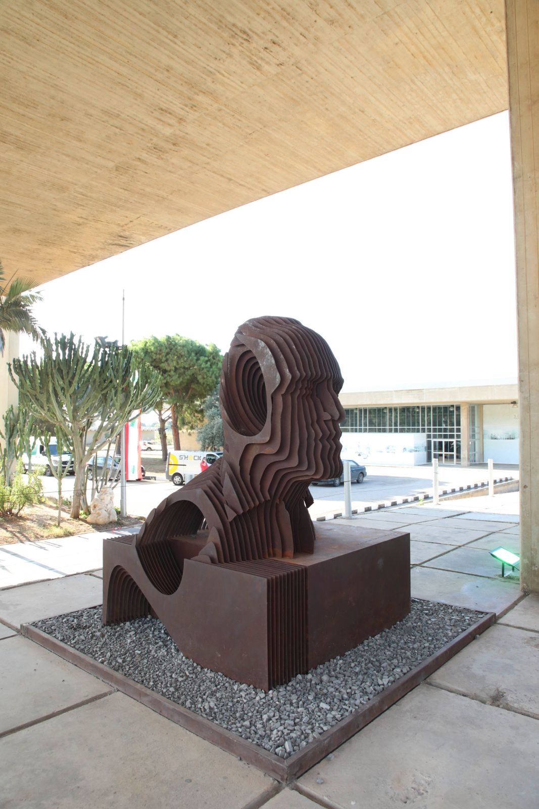 L’œuvre a été réalisée par l’artiste libanaise Sandra Sahyoun, qui propose une interprétation contemporaine du langage architectural de Niemeyer. Par son travail, elle revisite les lignes modernes et la vision futuriste de l’architecte brésilien, tout en les inscrivant dans le contexte actuel du patrimoine libanais. L’artiste a offert ce buste au Liban à titre gracieux.