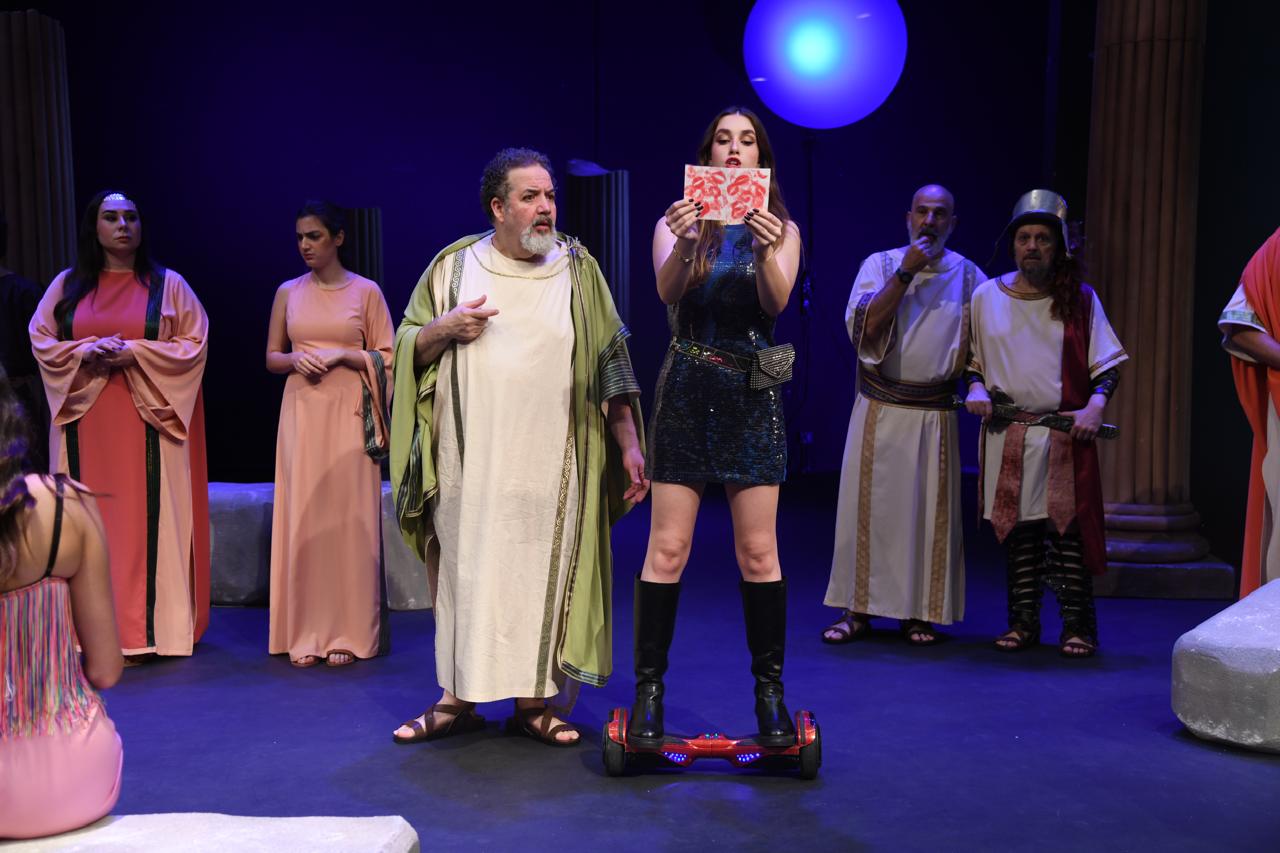 L’adaptation opérée par Khoury s’inscrit clairement dans son contexte culturel. Le texte multiplie les références, politiques, sociales, théâtrales, médiatiques, locales ou régionales créant un réseau de clins d’œil destiné à un public attentif. Le quatrième mur se fissure régulièrement, transformant les spectateurs en partenaires de jeu. Cette relation directe, parfois spontanée, installe un climat de proximité qui structure la soirée.