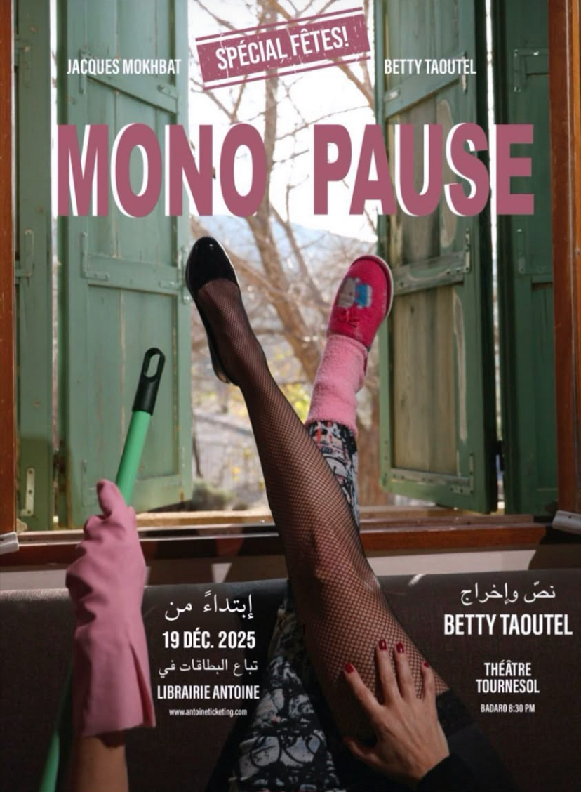 Mono-Pause sera en reprise au Théâtre Tournesol pour les fêtes de fin d’année. Un vrai cadeau de Noël, en attendant de la voir à nouveau sur grand écran, dans le film de Gaby et Michel Zarazir, « Saidet el Barmeh » où elle joue le rôle d’une religieuse « très méchante ».