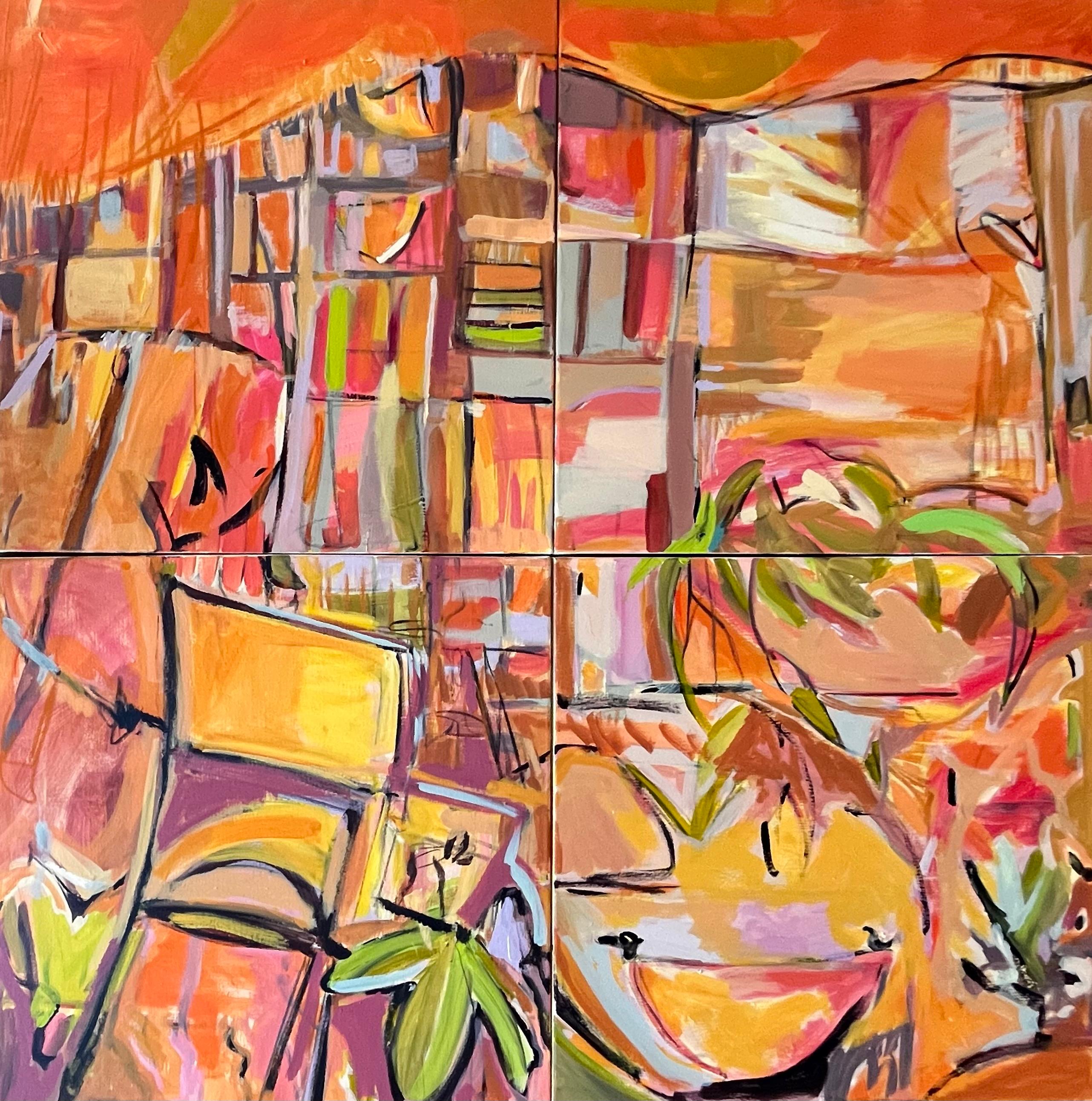 Quadriptyque, Souvenir d’un Parasol Orange Memory of an Orange Parasol, 2025, Acrylic on canvas, 140x140 · (70x70 each)