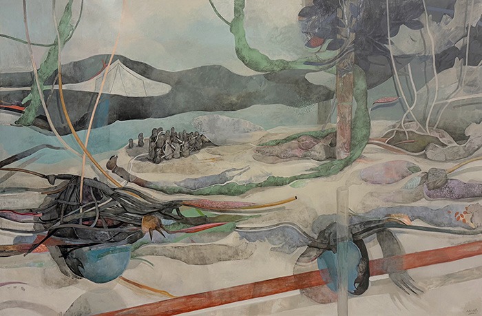 Adel Abidin, Above the Abyss, 2025, Acrylique sur toile, 158 x 170 cm.