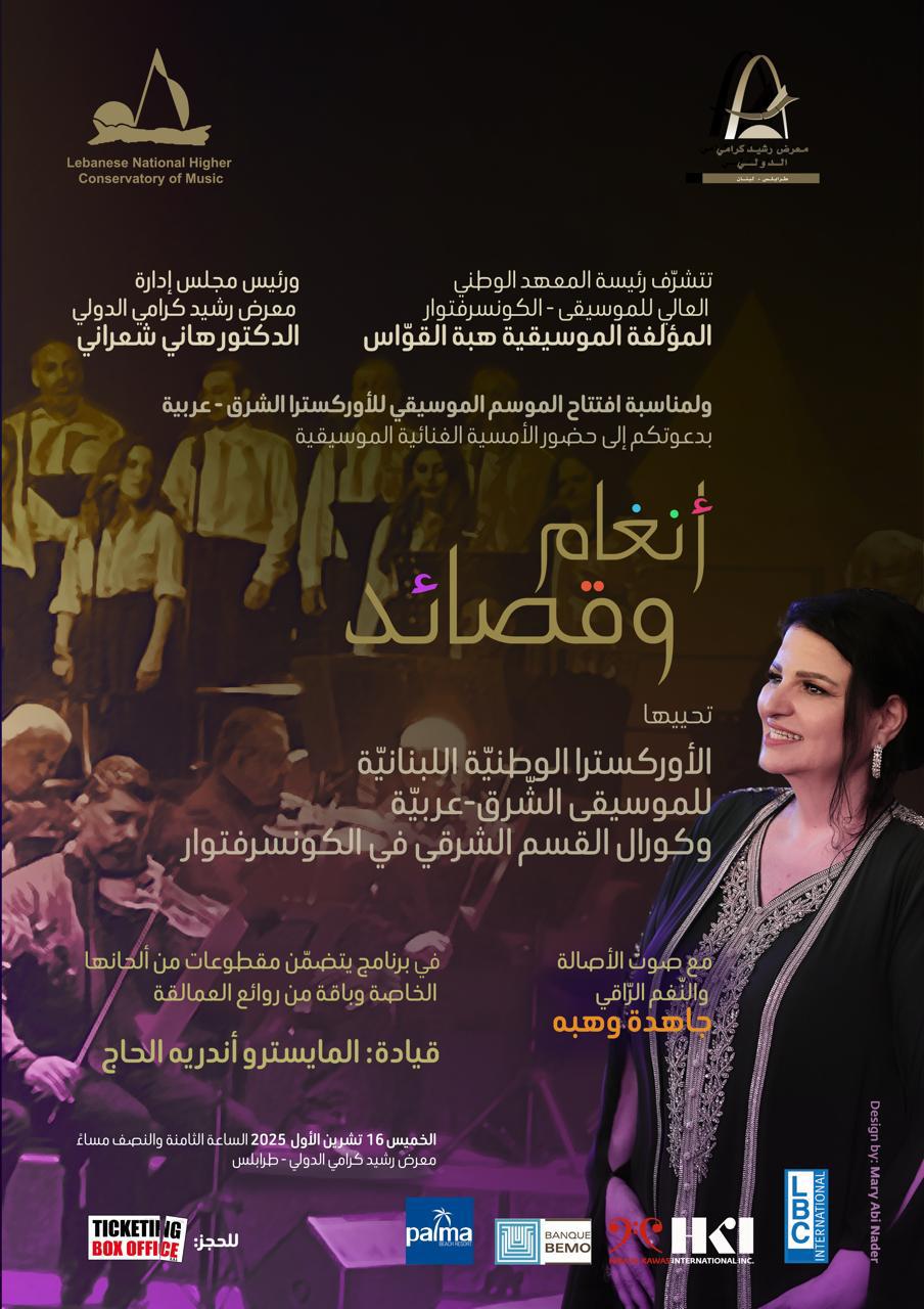 Le jeudi 16 octobre 2025 à 20h30, la Foire internationale Rachid Karamé de Tripoli (RKIF) s’animera au rythme envoûtant des harmonies du Concert orchestral Mélodies et Poèmes « أنغام وقصائد ». Cette soirée exceptionnelle réunira l’Orchestre National Libanais de Musique Orientale et le Chœur de la Section Orientale du Conservatoire National Supérieur de Musique, avec la participation de Dr Hiba Al- Qawas, directrice du Conservatoire et compositrice, ainsi que de Mme Jahida Wehbé, interprète de ses propres œuvres, sous la direction du Maestro André El Hajj. Dans ce site majestueux, les notes se mêleront aux échos du lieu et de son passé, offrant au public un voyage émotionnel et poétique, où chaque accord résonnera comme un hommage à la beauté intemporelle de Tripoli.