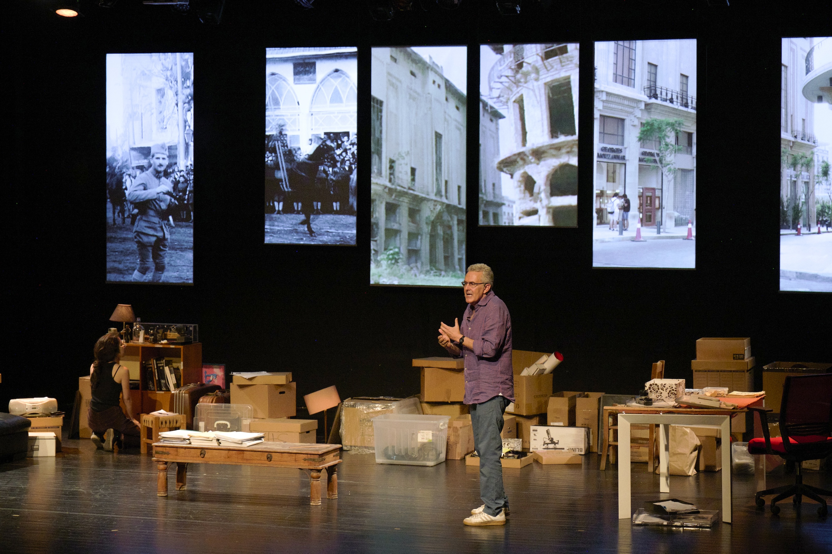 Ce spectacle n’est pas un monologue mais une traversée. Le cinéaste y affronte ses fantômes : la guerre, les déménagements répétés, les départs, les morts. Il évoque la dyslexie qui lui faisait obstacle, l’ambidextrie qui lui faisait question « on voulait que j’utilise une main, mais que faire de l’autre ? ». Entre français et arabe, entre son père et sa nounou, il a longtemps vécu dans une langue coupée en deux. C’est de cette fracture que naît toute la pièce : l’urgence de recoller ce qui a été séparé, de faire cohabiter sur scène deux voix, deux mondes.
