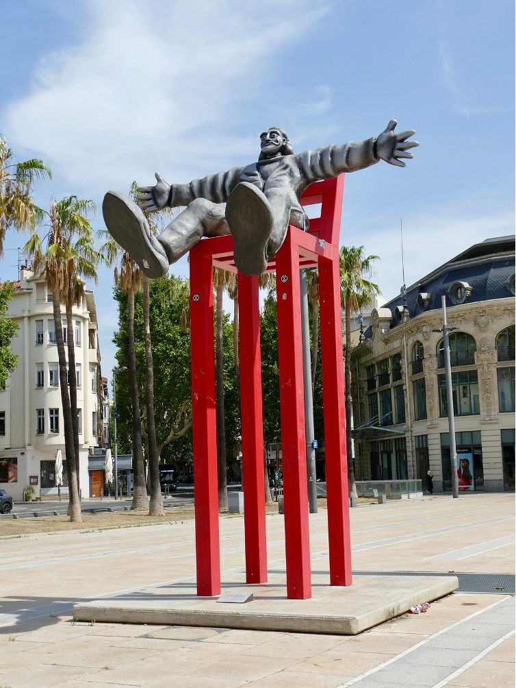 (Dali en lévitation, place de Catalogne à Perpignan)