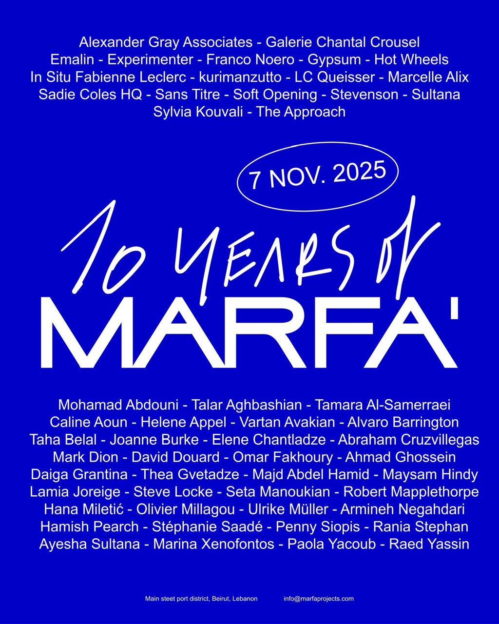 We’re excited to invite you to celebrate Marfa’s 10th anniversary alongside 18 galleries from all over the world!