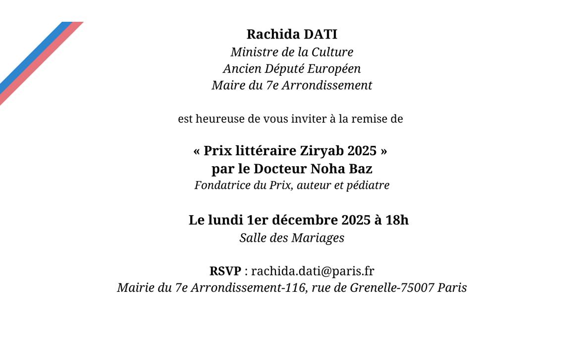 🇫🇷 PRIX LITTERAIRE ZIRYAB 2025, NOHA BAZ